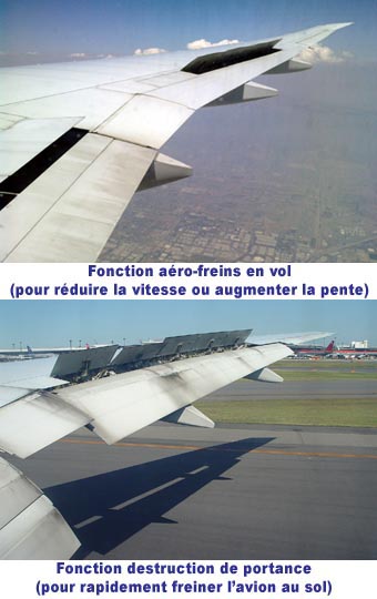Vue des spoilers déployés, en vol et au sol :